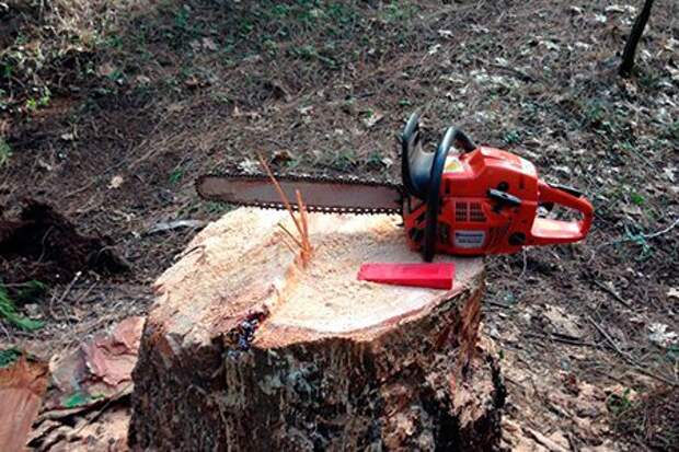 Распил ствола и корчевание пня