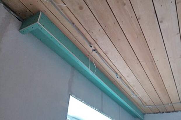 Данная работа выполняется перед монтажом остальной части потолка, поэтому крепления будут осуществляться напрямую к обрешётке или черновой обшивке потолка. На участке монтажа должен быть сплошной настил — при необходимости добавьте ряды доски или плитного древесного материала.